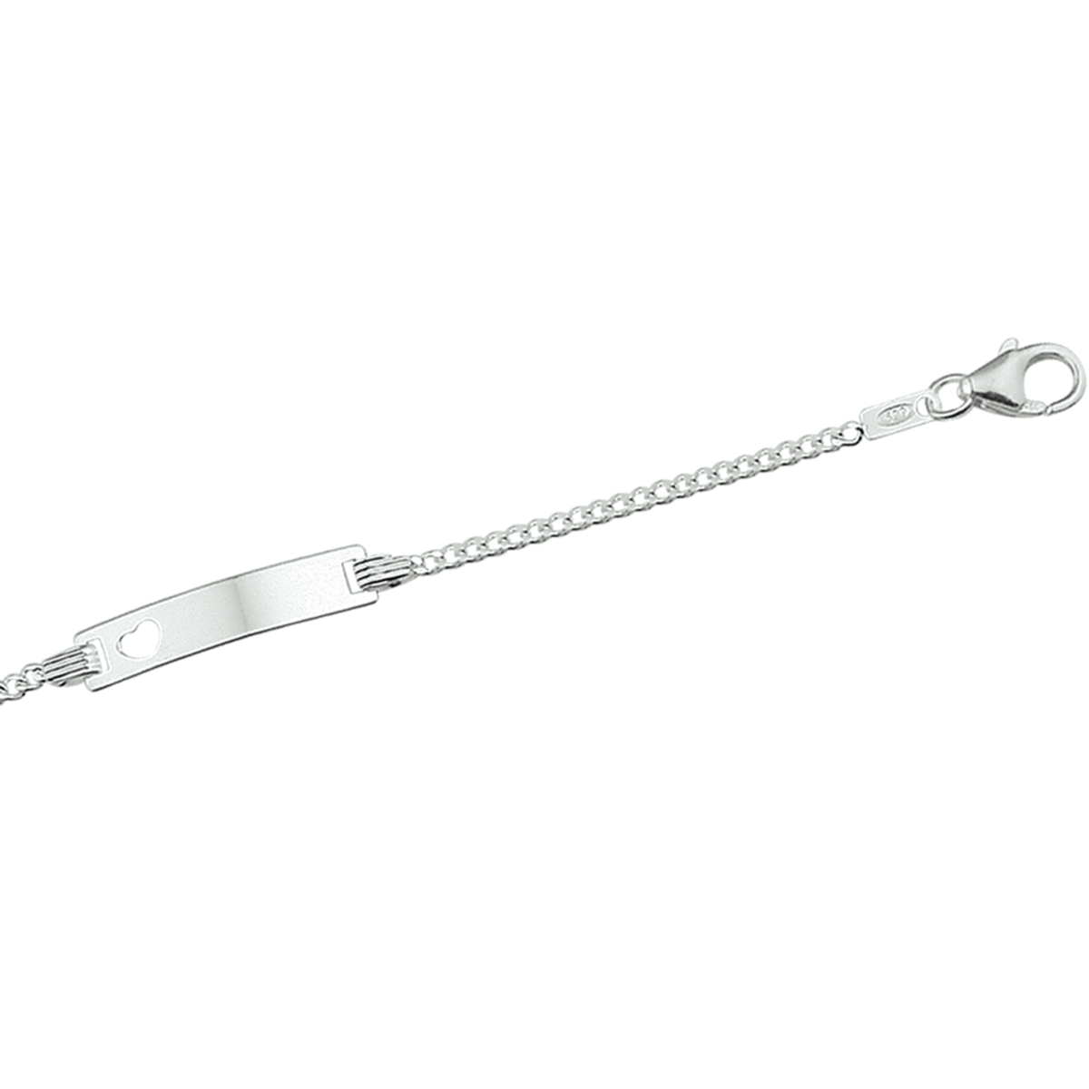 Beschrijving: Zilveren graveerarmband met een gestanst hartje. De lengte bedraagt 9cm met 2cm extensie. De breedte van de graveerplaat bedraagt 4.2mm.