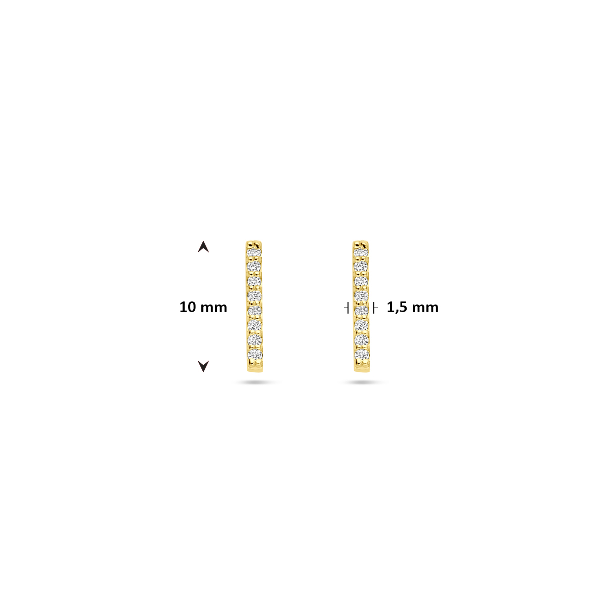 14k Geelgouden oorknoppen uitgevoerd met lab grown diamant. De oorknoppen hebben een afmeting van 10x1.5mm. Het totale diamantgewicht is 0.08ct.