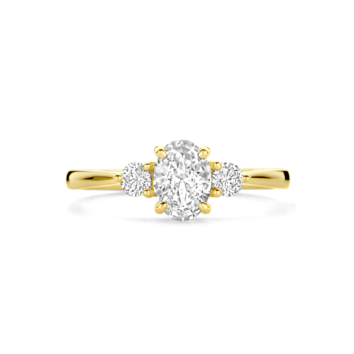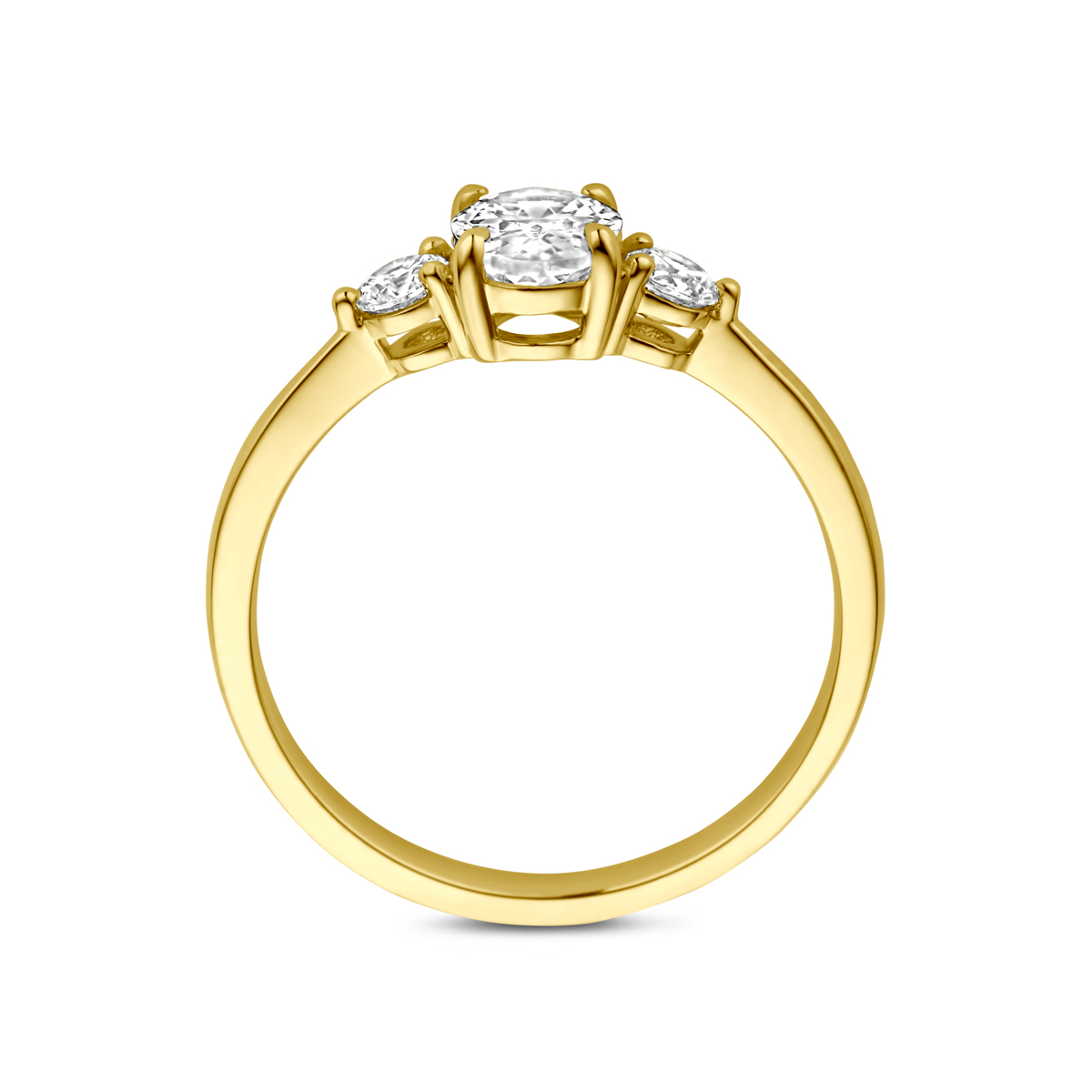 14k Geelgouden ring uitgevoerd met zirkonia. De ring heeft een breedte van 7mm.