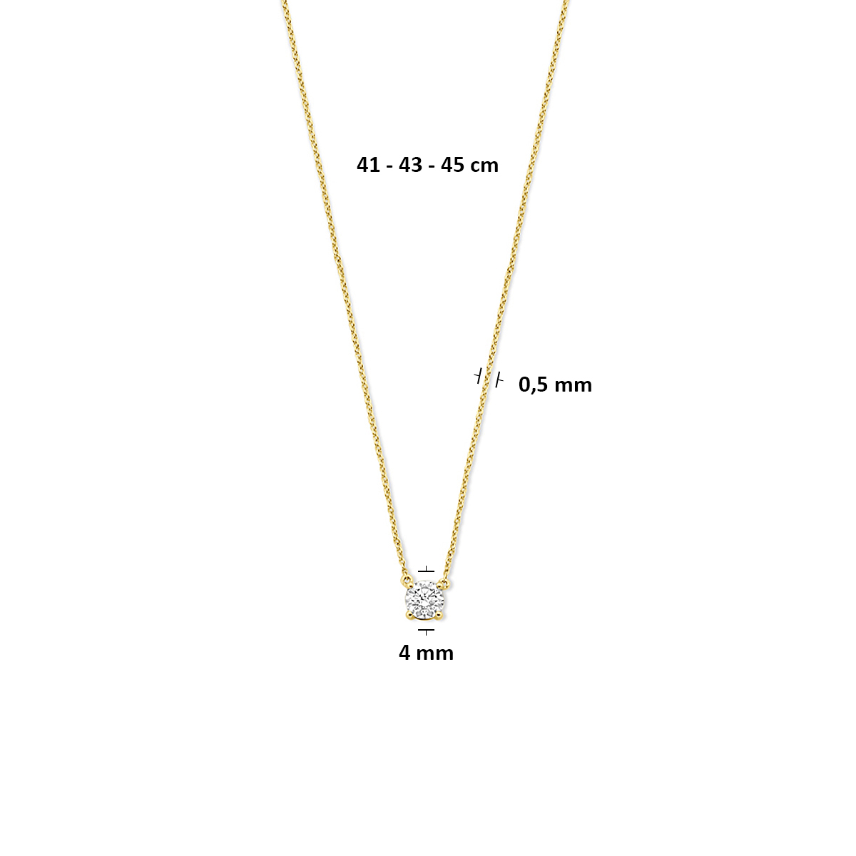 14k Geelgouden collier uitgevoerd met lab grown diamant. Het collier heeft draaglengtes van 41-43-45cm. Het totale diamantgewicht is 0.25ct.