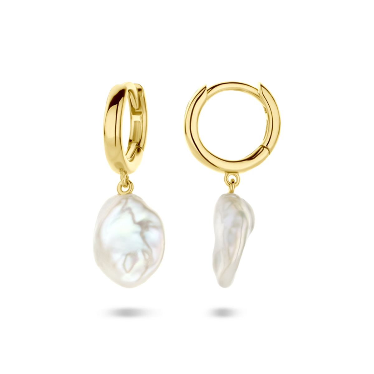 Verguld op 925 zilveren klapoorringen uitgevoerd met barok parel. De oorhangers hebben een totale hoogte van 24mm. Geen garantie op de plating.