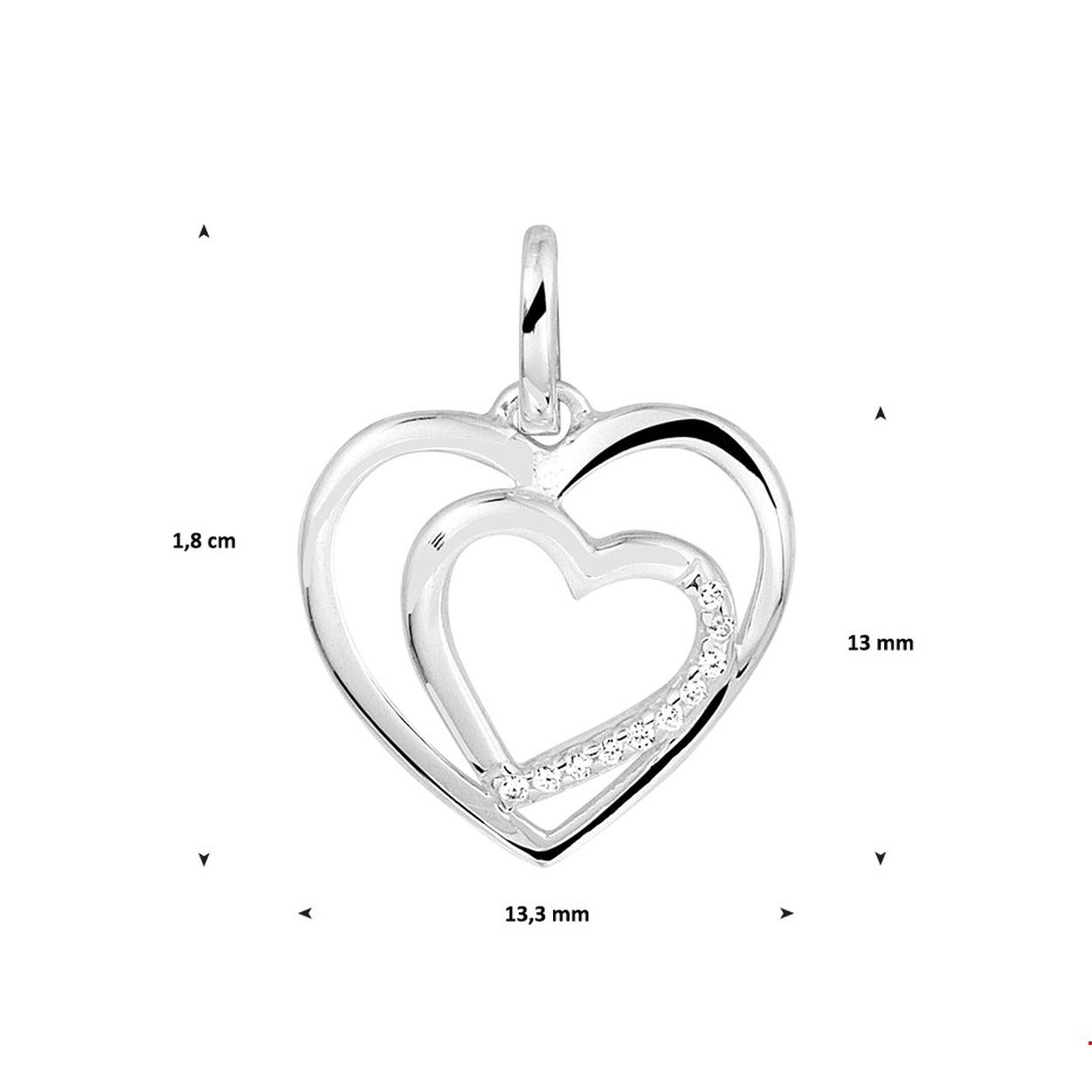 Romantische gerhodineerd zilveren hart hanger met een afmeting van 13x13.3mm en een totale hoogte van 18mm. De hanger is uitgevoerd met een schitterende rij van zirkonia en is goed te combineren met een bijpassend collier uit onze collectie. De combinatie van de sprankelende zirkonia en het bijzondere hart is een originele toevoeging aan jouw sieradencollectie! Info: Gerhodineerd zilver is door de rhodiumlaag beter bestand tegen verkleuren en krassen.