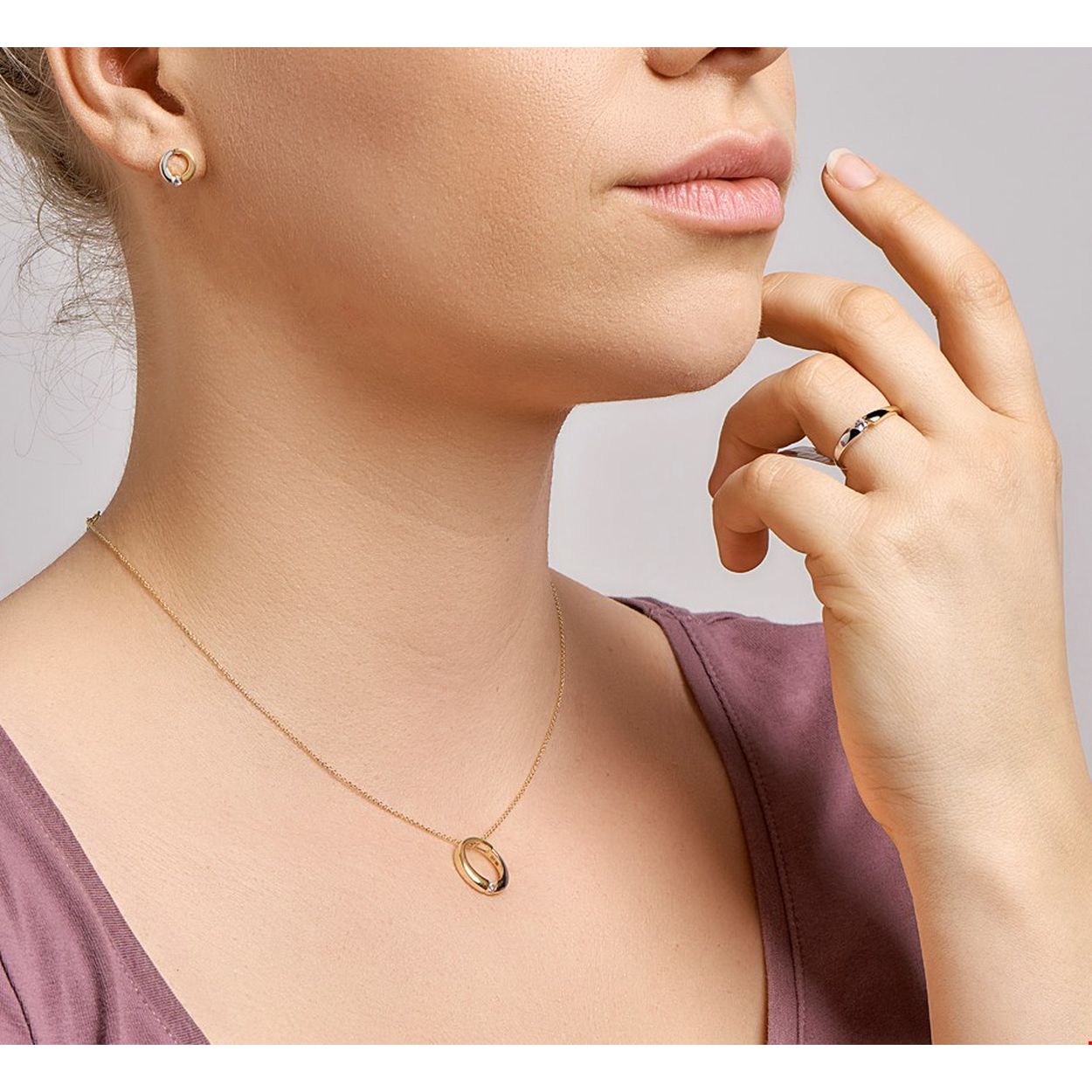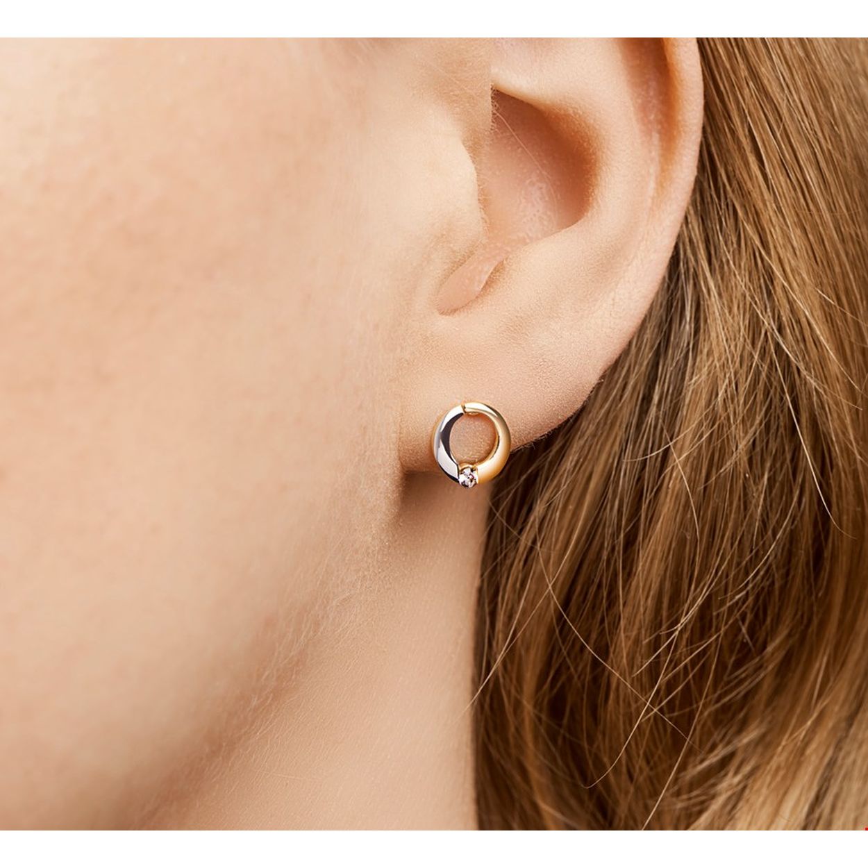 Beschrijving: Deze oorstekers zijn een plaatje! Het 14K geel- en witgoud wordt onderbroken door een transparant witte zirkonia steen van 2mm. De diameter van de ring is 8mm.