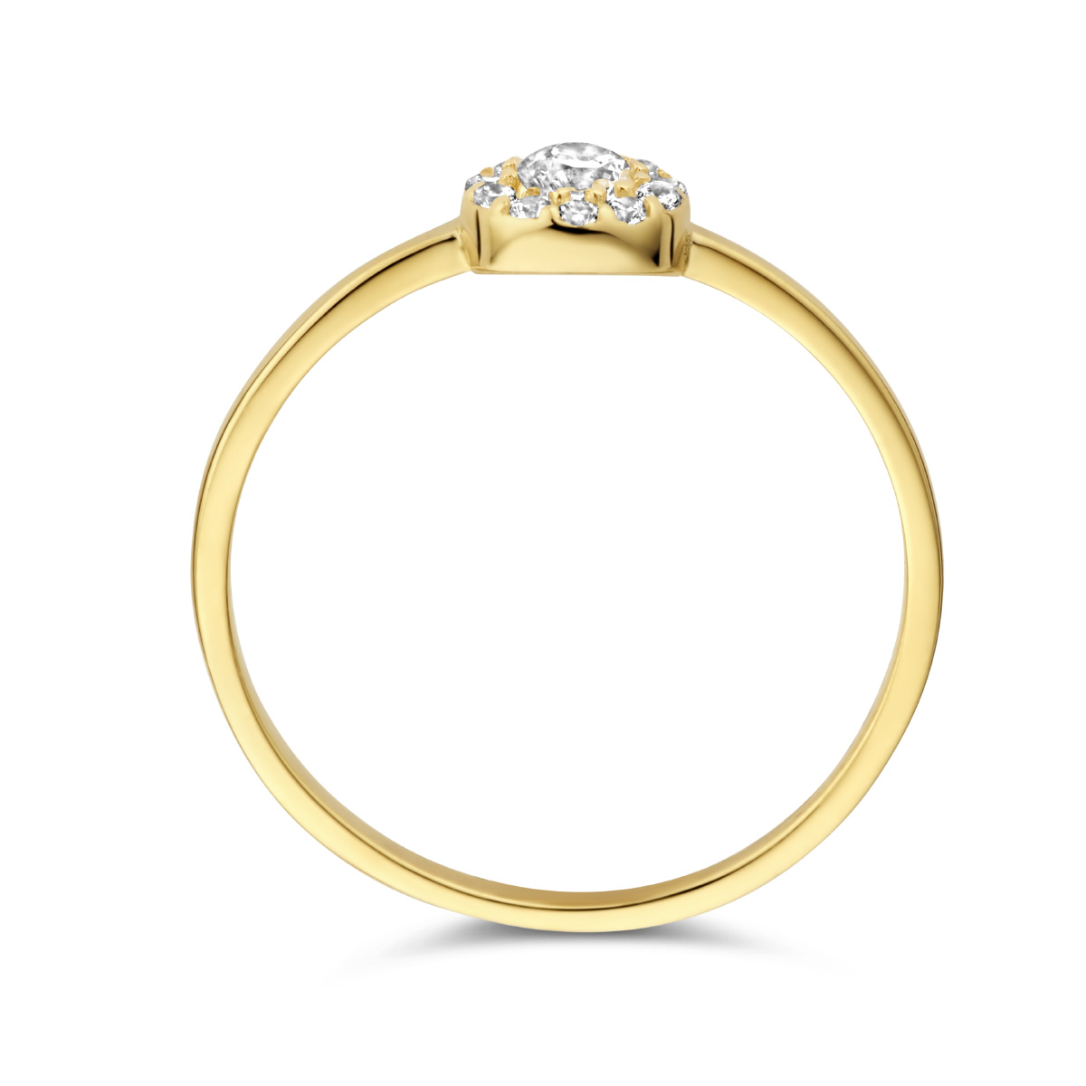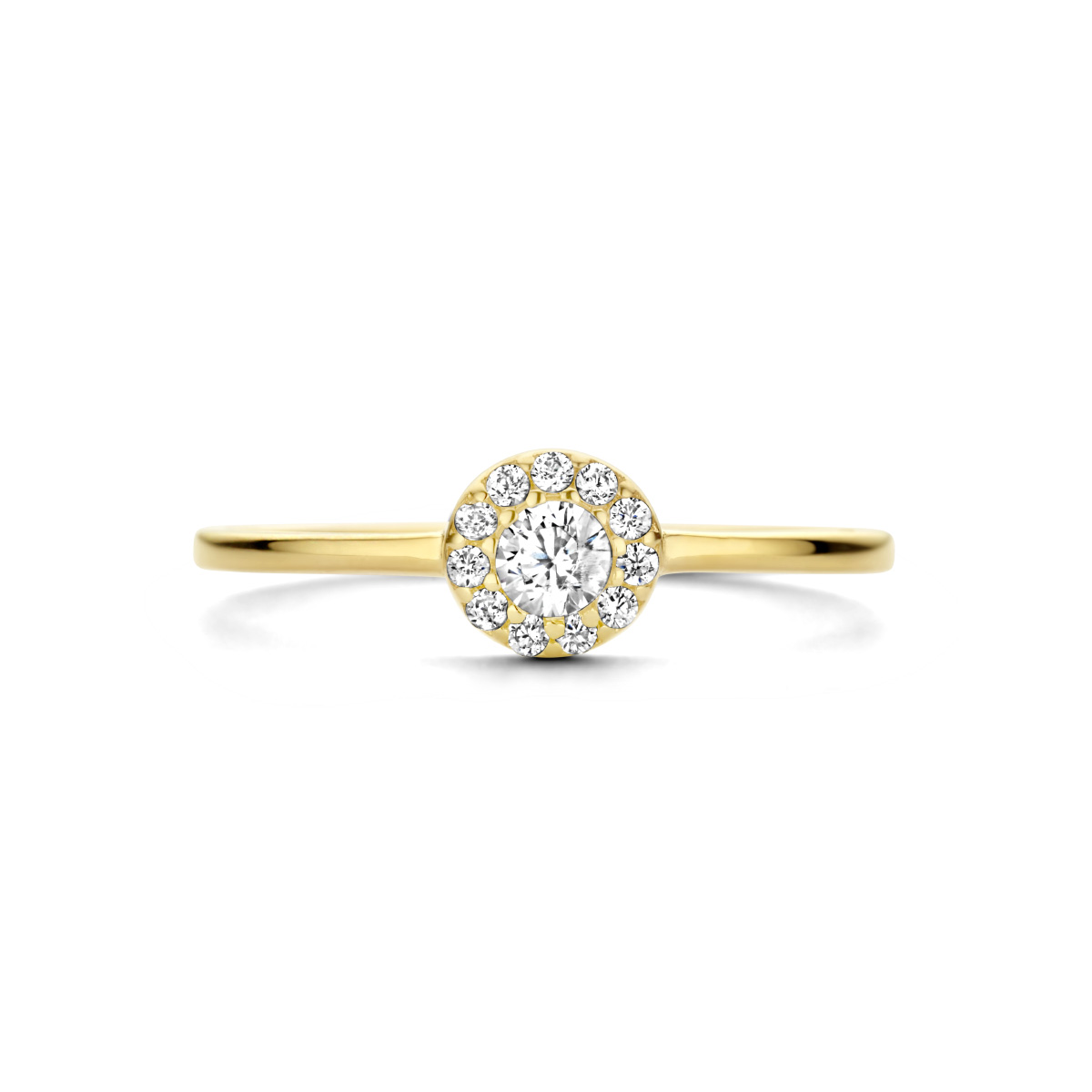 14k Geelgouden ring uitgevoerd met schitterende zirkonia. De ring heeft een breedte van 5.5mm.